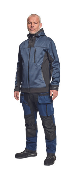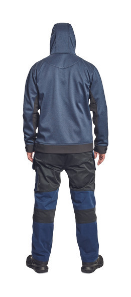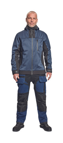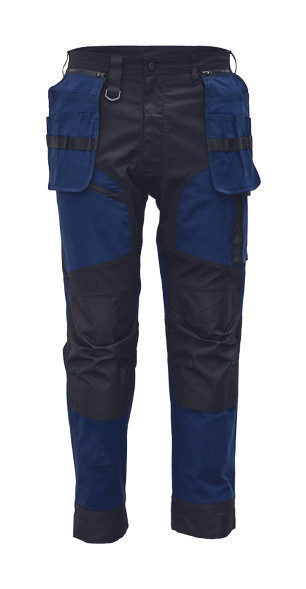 férfi munkanadrág rugalmas derékkal; 2 oldalsó zseb, két szerszámtartó zsebbel elöl; D-gyűrű; 1 oldalsó zseb a lábon hajtókával; 1 oldalsó zseb cipzárral; 2 hátsó hajtókás zseb; megerősített térdrész, térdvédőtartó; 5 cm-rel meghosszabbítható nadrágszárak; a nadrág hátsó, alsó része megerősített; dekoratív varratok; 265 g/m2ű