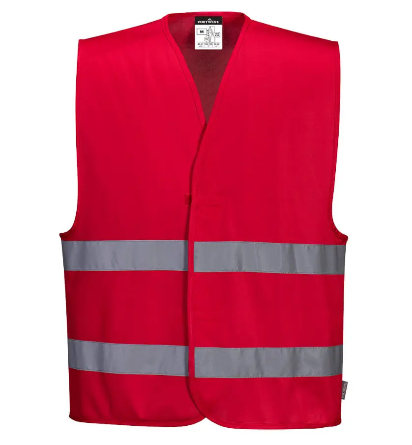 F474RERL-XL, Portwest F474-es Iona mellény fényvisszaverő csíkkal, normál fazon piros színben