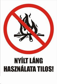 Nyílt láng használata tilos!, öntapadós tábla