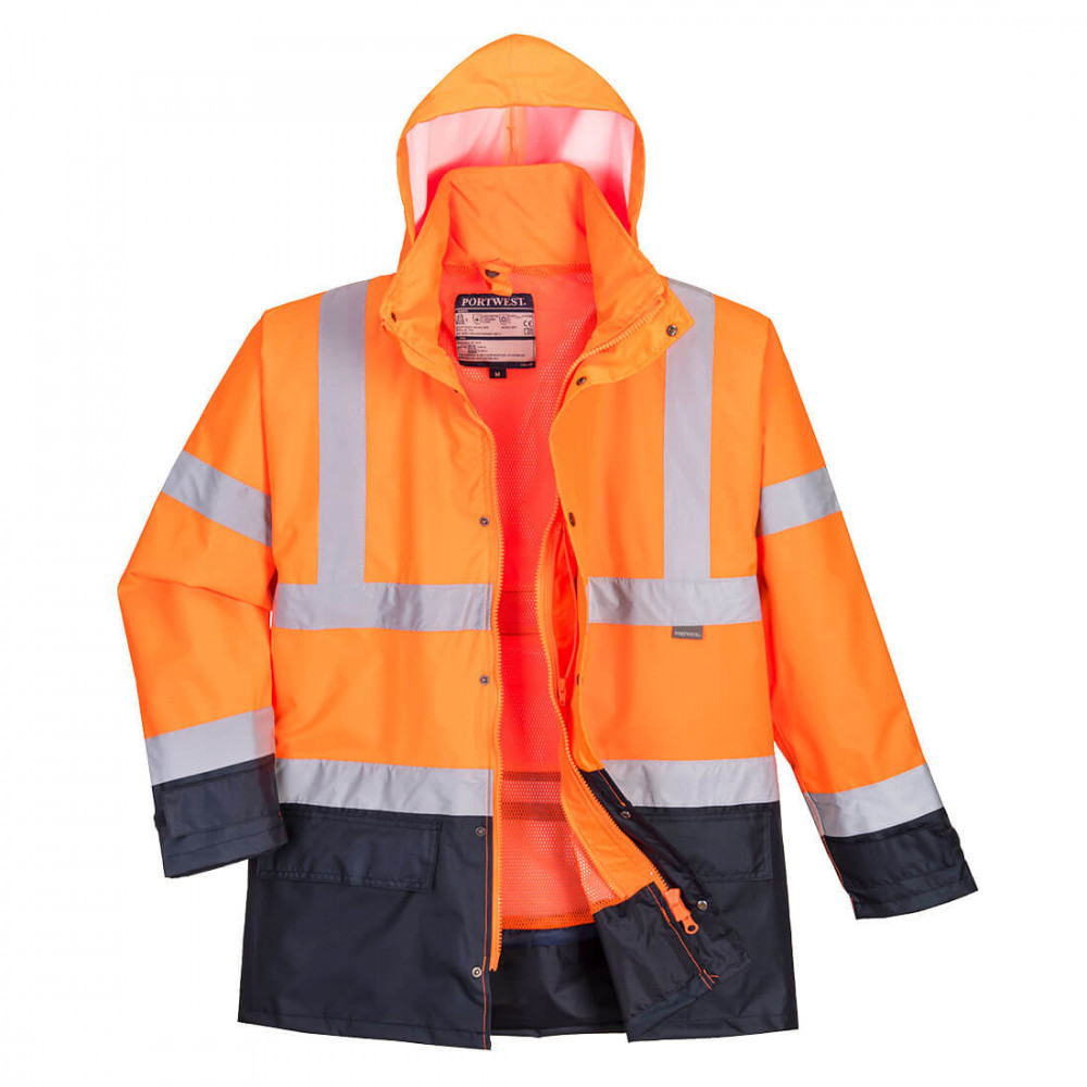 EU szabvány: EN471, EN343Anyag: 100% poliészter, 300D Oxford szövés folttaszító bevonattal190g PU bevonattalSzínek: sárga/tengerészkék