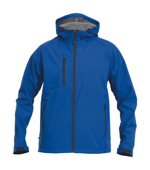 softshell kabát kapucnival, membránnal és belső polár réteggel; cipzáras; 1 mellzseb, 2 cipzáras elülső zseb; tépőzárral állítható a kapucni és az mandzsetta kerülete