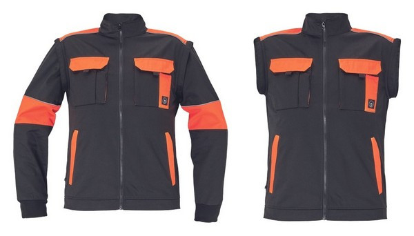 férfi cipzáras munkakabát levehető ujjakkal; 2 első zseb, 2 mellzseb; Oxford 600D erősítés a váll és könyök részeken; rugalmas mandzsetta és alsó derékszegély; fényvisszavető szegés