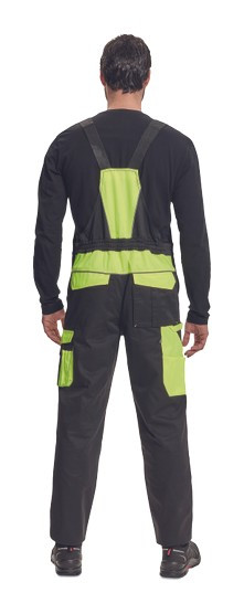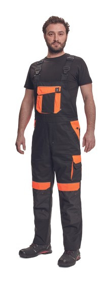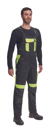 férfi mellesnadrág rugalmas derékkal, széles pántokkal, műanyag csatokkal; 2 első zseb, 1 oldalzseb, 1 nagy mellzseb, 2 hátsó zseb; 2 kis hátsó zseb a jobb combon; fényvisszavető szegés; Oxford 600D megerősített térdrész, térdpárna tartó; a szárak hossza meghosszabbítható