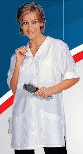 HT 213-es női köpeny, elöl gombos, galléros, csipke nélküli, egyenes fazonú modell. fehér