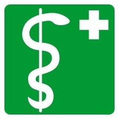 Orvos helyét jelölő, után világítós elsősegély helyet jelző öntapadós tábla