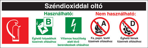 Széndioxiddal oltó tűzoltó készülék használati útmutató, után világítós tűzvédelmi öntapadós tábla